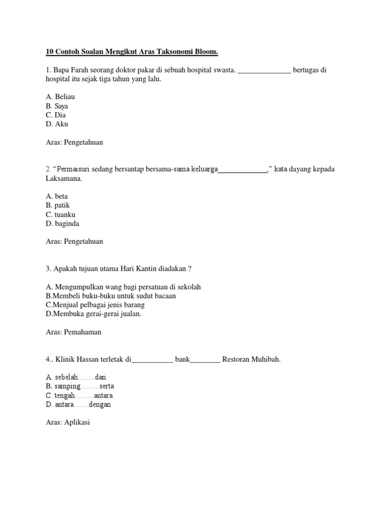 Soalan Mengikut Aras Taksonomi Bloom Bm Pdf