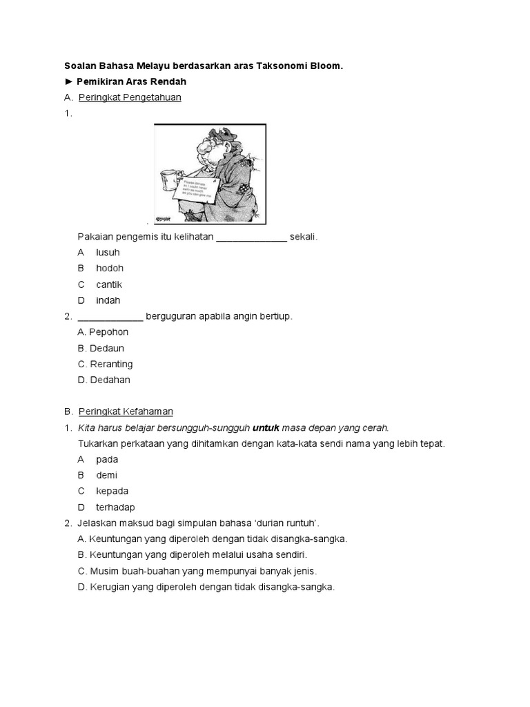 Contoh Soalan Taksonomi Bloom Bahasa Melayu